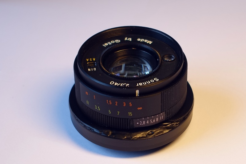 – well ... no. But since the proof is in the pudding, I decided to just try and glue it on, again onto a M42 adapter filed to size. As the lens has internal focusing (not external, like the Sonnar) I took great care with the hacksaw and the grinding to arrive at the exact register – without a real grinding machine this is as accurate as it gets. Another