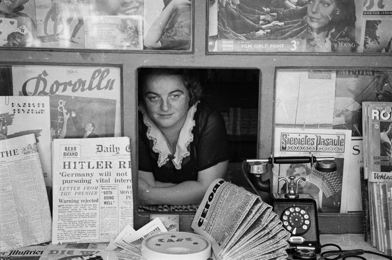 people in uniforms, and only very few have swastikas on them. One of the most interesting pictures is that of the young lady newsagent. From the newspaper headline it can be dated to end August 1939, very few days before World War II outbreak.